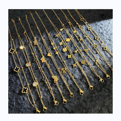 High Quality Stainless Steel Adjustable 18k Gold Plated Roman Numeral Butterfly Four Leaf Clover Heart Star Bracelet for Women